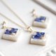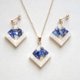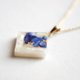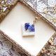 这是一款用树脂制作的方形吊坠!以浓郁的蓝色为背景,点缀花朵和珍珠,搭配闪粉与白色线条,设计出优雅的吊坠。利落的方形线条能让颈部线条看起来更为修长。深沉的藏青色是秋冬季节的绝佳搭配单品。