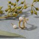 双圈设计中,一圈带有细致的滚边(milgrain)纹路,另一圈则光滑亮泽,并点缀着一颗珍珠。