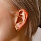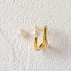这款耳环呈现不对称的设计,仿佛将两款不同设计的圈形耳环叠戴,并搭配小巧的珍珠耳环。