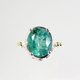 鲜艳的绿色宝石,镶嵌于以 18K 金点缀的唐草与镂空图纹底座上。