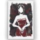 这幅水彩画以丰富的砖红色和深灰色调描绘了一位身着晚礼服的优雅女性剪影,完美展现了精致与神秘的气质。她的面容未被勾勒,使观者得以自由想象她的故事。