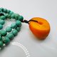 老蜜蜡搭配天然绿松石项链,只有一件