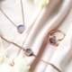 天然翡翠颜色包含七彩,而当中的紫玉为女士们挚爱。此系列采用的紫玉翡翠,特点在它的色彩上略带些粉红。配合玫瑰金营造你的完美配搭,为您的衣着加添优雅。