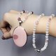 **1.图上粉红蛋白石银框坠高约52mm、宽约38mm、厚约4.8mm,链身蓝月光约5.2mm,碧玺约3.8-7.1mm,项链(不含坠)总长度约56cm,为插扣。**