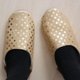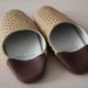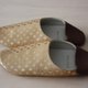 In thick pigskin domestic (pig leather) is the leather of room shoes depicting the polka dot of stamping of gold in the original.