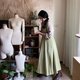 斜裁A圆裙,摇摆美丽,垂坠弧度。