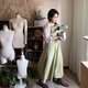 柔顺圆领,胸前精致细褶延伸拉长视觉。