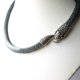 Silver snake necklace Ouroboros bracelet Animal necklace Gray beaded crochet nec