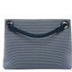 - 时尚轻网布 真牛皮 雷射雕纹 手提单肩包(蓝灰)