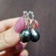 “手工配对,独一无二巴洛克珍珠 大溪地天然孔雀绿,彩虹镜面 925纯银复古蕾丝圈”