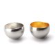 纯锡制的圆满摇曳杯,圆弧的底座造型让杯身可以在桌上摇曳。双色圆满摇曳杯组,是由纯锡制的摇曳杯,与内侧贴有金箔的摇曳杯组成。