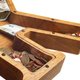 It's crafted of solid oak wood and finished with non-toxic natural oil. This money box frame is environmentally friendly and safe for children. It can be used for a long time, to get the coins out you need to unscrew a few screws and take the glass.
