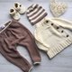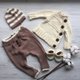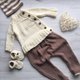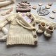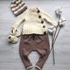 Knitting clothing set for baby boy. Sweater, hat, trousers and booties. Can be as take home or baptism gift for newborn boy. A wonderfull shower gift for the expecting parents makes a really cute New Mom or New Dad gift.