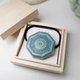 八角形的轮廓上,浮现出如花朵般的纹样,搭配沉稳的蓝绿色调,散发出高雅的气质。