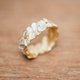 四叶草系列是幸福的迷人表达。在三叶草中你总能找到四叶草,所以每天都是你的幸运日!这枚戒指是一排简单的四叶草,环绕着佩戴者的手指。底座采用高纯度银,镀有 23K 金,部分黄金已被刮掉,露出下面的银。这种精致而复杂的饰面赋予这款三叶草设计独特的美感。
