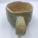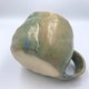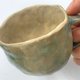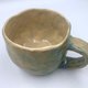 尺寸:9.5 x 6.5 x 5.5 cm。 使用台湾白陶土、美国Amaco釉药。 外侧为蓝色偏绿釉药,内侧为砂白色釉药。 圆胖造型,杯口略窄,小巧好拿。 背后有刻上“扭扭陶”字样。 使用回收再利用之包材。