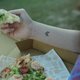6. 使用大面积吸满水的卫生纸,完全沾湿纹身贴并轻压20秒。