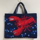 - A lesson bag with a lobster appliqué. I made my nails bigger and finished it cool.