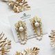 - ●医疗级抗敏耳针,螺旋耳夹 ●施华洛世奇圆珠,水钻,14K包金链条,树脂珍珠链条,镀18K金配件 ●耳环总长4.5m x 2cm