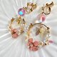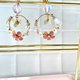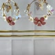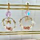 金色的环扣上有粉红色的金属花,花形的珠子,珍珠,金属珠和亮片缠绕在钢丝上。