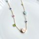 材质:线材 14kgf,项链 14kgf,珍珠母贝、橄榄石、粉红托帕石、磷灰石、坦桑石、海蓝宝石