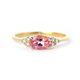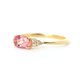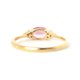 这款 K18 戒指以粉红碧玺的椭圆形切割为主石,左右各镶嵌六颗碎钻。粉红碧玺拥有迷人的华丽色泽,是碧玺中最受欢迎的宝石,同时也是十月份的诞生石。
