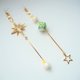 清爽的绿松石蓝和黄TEMARI 和星星魅力不对称耳夹。