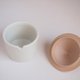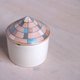 - 白色底座,涂有雾面釉料 / 盖子由杏色粘土制成,图案采用镶嵌技术制作。