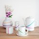 现在,橡皮筋也可以是装饰品,"两个八月"从以往的生活经验中,发想出RUBBER BAND 这系列作品,幻想日常使用的餐具如果是柔软有弹性的,那么套上橡皮筋后,变形的餐具顿时也有另一种表情。