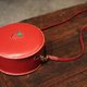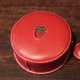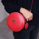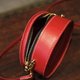 为客户定制的草莓小圆包,包包上面缝制了一个可爱的草莓刺绣图案。