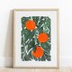 这件原创艺术品是一份贴心而时尚的新家居礼物。无论您是想提升自己的家居品味,还是为您所爱之人送去一些特别的惊喜,这款橙子花卉印花都是永恒而优雅的选择,在未来的岁月中都会被人们珍藏。
