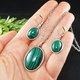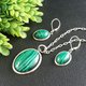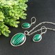 孔雀石项链与耳环饰品组。绿色宝石,独特手工制作的椭圆形项链与耳环。宝石镀银极简饰品组。送礼给她的完美选择。