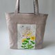 - 拼接式的托特包,车绣加上彩绘,一针一线慢慢构思出的画面,每幅画都是用心创作出来的哦!内里防水布轻挺耐用。