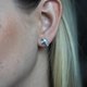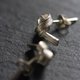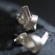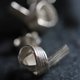 We created these earrings in 95%silver from a 3 mm wide silver strip and added the streaks with fast blows of the narrow part of the straight-peen hammer. The silver "ribbon" was then folded into a knot-style shape where one end is left longer than the other. Our brand logo "Stories" was stamped on the back side of the earring. The posts and stoppers are in sterling silver.