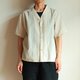 这款男女皆宜的短袖衬衫采用不对称领设计,材质为亚麻混棉的原色布料。