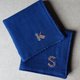 It is a handkerchief which embroidered hands of your desired initials on the cobalt blue cotton double gauze fabric.