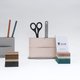 - 皮革文具组Bond皮革笔架、Cube方块皮革名片架、皮革鼠标垫三项桌上产品,皆由牛皮材质制成,每项产品均有多色可以选择,依照喜好颜色搭配在桌上风景展现个性。