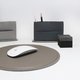 使用全苯染牛皮材质制成,正反面使用皮革包裹金属板,使用时不易移动,能针对如沙发等非硬质表面上使用的鼠标垫,沉稳且舒适,同时也能作餐桌餐垫使用。