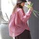 褶皺燈籠袖天絲複古櫻花粉翻領長袖襯衫