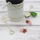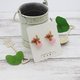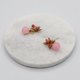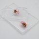使用沾湿艺术(dip art)工法制作了1朵桃子花、1颗花蕾、3片叶子,并结合了宛若桃子果实的天然石“粉玉(翡翠)”一同制作而成。