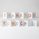 正面显示“THANK YOU”,翻面后则出现“SO MUCH”字样,每个字体的设计皆不尽相同。卡片内含留言区(位于背面)。