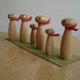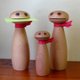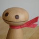 Eyes with different wood embedded in beech wood, and a stylish scarf with red felt