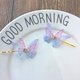立體夢幻漸變色紫色藍色粉色彩虹色真絲蝴蝶髮飾金色水鑽水晶薄紗蝴蝶髮夾頭飾新娘頭飾頭夾婚禮婚紗飾品首飾姊妹團生日礼物节日礼物交换礼物