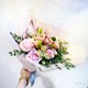 • 花材: 粉玫瑰,紫桔梗,粉桔梗,绿林草...