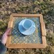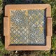 小绿色木质方形托盘,饰有 4 块手绘压克力木砖
