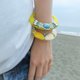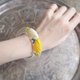 The quaint Lucite bangle, studded shell type of vintage cabochon and Stone. It is very light filtration and Kana comfortable to wear. Hand in accented with vintage unique retro color contrast.