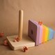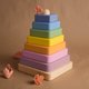 儿童木制教育玩具的尺寸:玩具木制方形金字塔的环很容易从金字塔的核心串起来并取下。彩虹堆叠环的高度为 7.1 英寸/180 毫米。木制玩具堆高机底座的宽度为 4.7 英寸/120 毫米。最小环的宽度为 2 英寸/50 毫米。