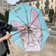 材质:100%聚酯纤维印花布料-PG布料塑胶握柄、铁中棒+铁支架+玻璃纤维防风支架