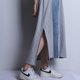 腰间松紧带,开岔裙摆前高后低