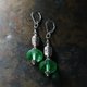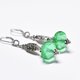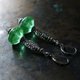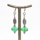 这款耳环由算盘造型的古董玻璃(含铀)与龟甲纹银质饰品串连而成,造型丰盈。